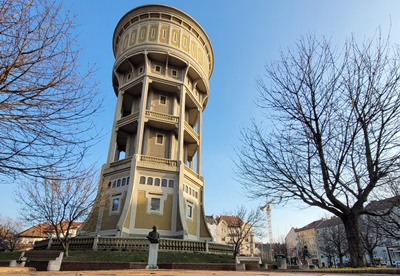 The country's first reinforced concrete water tower welcomes visitors to Szent István Square. The tower, with a capacity of 1004.8 m3 of water, was built in 1904 and still serves its original function. It was built entirely of reinforced concrete, with no exceptions such as the entrance door and the flagpole.
